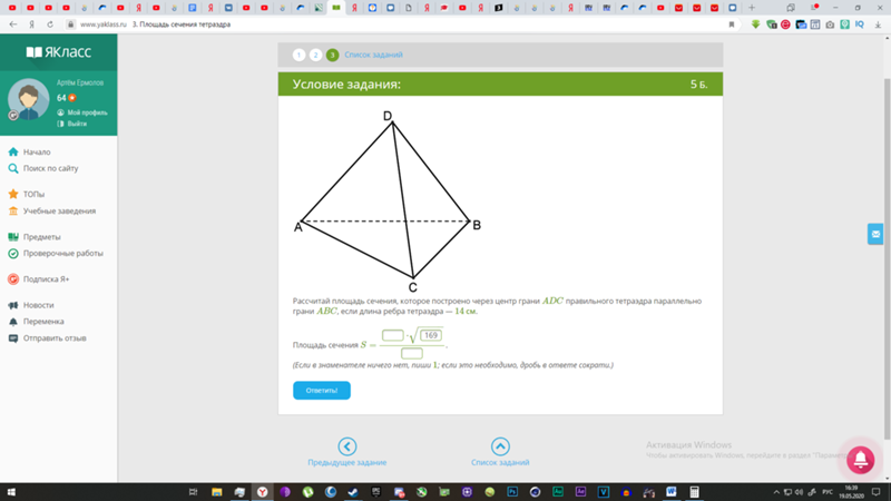 Площадь основания: 14v3/4 = 7v3/2